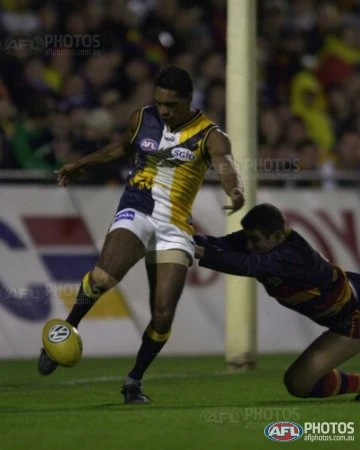 Two of 2001's strugglers put on a forgettable display on a wet and windy Adelaide night. The Crows pulled away from West Coast with a three goals to nil third quarter and although the Eagles fought back in the last term the Crows were able to hold off the charge. Ben Cousins had a lazy 36 possessions and Mark Merenda kicked two goals including another Goal of the Year contender.