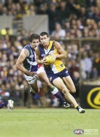 West Coast's best players were Andrew Embley, who did a good job on Matthew Pavlich, and Daniel Kerr, who burst forward a number of times and finished with three goals."